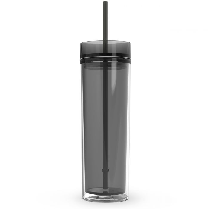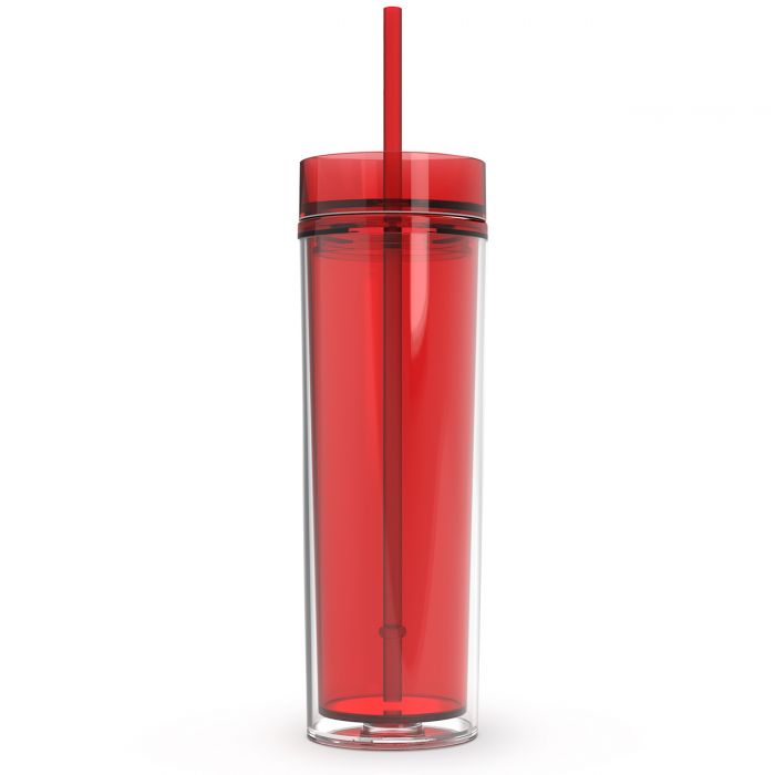 16oz double wall insulated acrylic tumbler. Made from high-grade 100% BPA free acrylic plastic, this tumbler is durable and ideal for everyday use. The plastic push-on lid creates a tight seal to prevent leaks and comes with a matching reusable plastic straw with slip stopper.